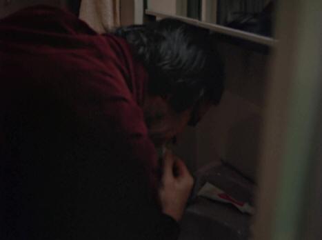 And afterwards he tells Vivian “You’ll have to excuse me because I’m going to take a piss.” He then closes the door behind him and on the outside of the door is a calendar picture of a soft porn model.