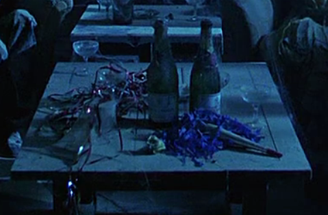 However, when he strolls into the Gold Room party there are no party balloons or confetti anywhere, not even in the adjoining hall.