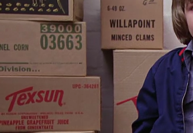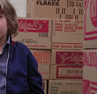 Another detail on the Dollar bill pyramid is that it features the Roman numerals 1776. Some sources say that the Eye of Providence seal was suggested for the dollar bill by design committees during the declaration of independence in 1776, but others claim that this refers to the birth date of the Bavarian Illuminati, a secret society with apparently conspiratorial aspirations for world power. It seems likely that Kubrick believed the latter in relation to the Dollar bill pyramid. The photograph that Jack appears in at the end of The Shining is inscribed with Overlook Hotel, July 4th Ball, 1921. The 4th of July is the declaration of independence, which occurred in 1776, but remember also that in the film’s symbology the word “ball” refers to the sun or Eye of Providence. So the “July 4th ball” more likely refers to the all-seeing eye of the 1776-born Illuminati. Incidentally, the historically accepted date for the inception of the Illuminati was May the 1st 1776. Listen to Jack ranting to his wife as the giant windows of the Colorado Lounge blaze in false light behind him. “Has it ever occurred to you that I have agreed to look after the Overlook hotel until May the first!” So we have the Illuminati inception referred to by exact date and year. (Note: the year 1921 is featured on the photograph inscription. This has been a source of confusion for some time, but I’ll be returning to it with a specific interpretation later in this chapter). There are other details that further suggest the Gold Room décor to be an illuminated Eye of Providence or sun symbol. In the storeroom scenes there are two interesting brand names written on cardboard boxes that were apparently made up for the film. One reads “Texsun” and the other reads “Golden Rey”. Sunrays are what the Eye of Providence or sun emit.