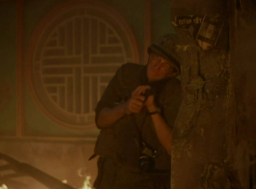 Cross references with The Shining’s sun symbolism were also featured in Kubrick’s follow up film Full Metal Jacket. In one of the final scenes the soldiers manage to flush out a sniper, who turns out to be a woman dressed quite distinctly to look like a Native American woman.