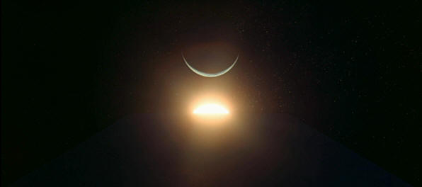 Back in the late 1960’s Kubrick made Dr Strangelove, an incredibly controversial comedy about the possibility of nuclear war. With this film Kubrick revealed an intense distrust and distain for the Pentagon. He even included a sub-plot of an ex-Nazi working at the Pentagon as a consultant - no doubt Kubrick was aware of Operation Paperclip while researching the film. Rather than follow this up with an equally controversial film, Kubrick then developed a unique double narrative story structure for his next project. 2001: A Space Odyssey had a surface level narrative, developed with Arthur C Clarke, to attract big money investors like IBM and NASA on the promise of pro space exploration and pro artificial intelligence themes. The surface level narrative of an alien race guiding man’s evolution also fooled critics and audiences for many years, but beneath this was a separate narrative which was communicated through complex subliminal details. Part of the subliminal narrative in 2001 was an attempt by Kubrick at exposing the corrupt political agendas of the space race, but in particular the film featured a message that the Eye of Providence floating above a pyramid (featured on the US Dollar bill) is a form of false enlightenment and a symbol of pyramid structured tyrannical social control. Twice in the film Kubrick shows the monolith from an angle that makes it appear like a pyramid minus its capstone, but instead of an illuminated Eye of Providence, Kubrick placed the crescent of a celestial body at the apex. The enlightenment is instead shown as the sun emerging out of the pyramid base.